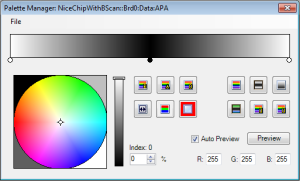 The palette form allows the user to alter the displayed colors of an image, in order to highlight specific details or enhance contrast. The palette is opened from the Image Form menu bar.