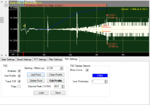 - Press the "Add Point" button to add an entry to the TGC Profile. The selected peak should reach the desired %FSH value. Note: adding a point will automatically enable TGC