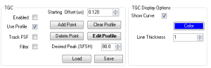 By default, the TGC profile starts from the Main Bang (or time zero plus the Starting Offset; see below). To have the TGC start track a Follower crossing, click on the "Track FSF" option.