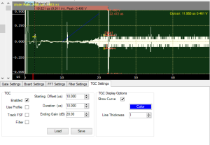 For those A/D boards that do not have a hardware TGC setting, Software TGC is used. This will run the TGC profile on the digitized waveform, resulting in similar (but not identical) enhancement to the ultrasonic signal.