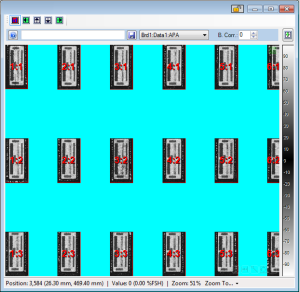 The Tray spacing determines how much "space" is between each part. It is important that the spacing be set properly so that the parts are all aligned in the image results, and that the scans do not "drift". Spacing includes the width and/or height of the part: thus if a set of parts that are 10mm x 20mm are arranged so that they are next to each other, the minimum spacing is still 10mm x 20mm. Spacing can be set by typing the desired values into the Scan Setup fields in either Basic Mode or Advanced Mode. By making a coarse scan of a section of the tray, a user can determine tray size and spacing without tedious trial and error. Instead, do the following: