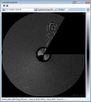 The scan collection data is displayed as a large rectangle (i.e. an "unrolled cylinder"), but can be displayed in a Polar plot if desired.