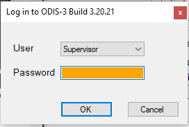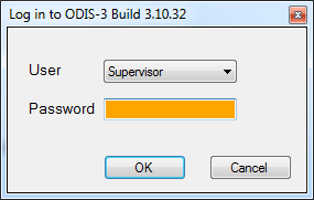 Like the Security Manager, ODIS prompts the user for a Login before starting the program. Depending on the user login settings, the user will be running ODIS in Advanced, Basic, or Production Mode.