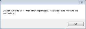The system can switch between users without doing a full logout, as long as both users have identical privileges. This is done to record ownership as different operators take control of the system. When switching users, the operator will be prompted to select a new user name. The operator does not have to enter a password to switch users. If the user selected does not have the same privileges, the switch will not take place and an alert dialog will be shown.