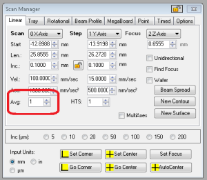 If using the simple averaging option, the system will divide the currently specified increment by the number of averages n and collect the results, averaging every n results.